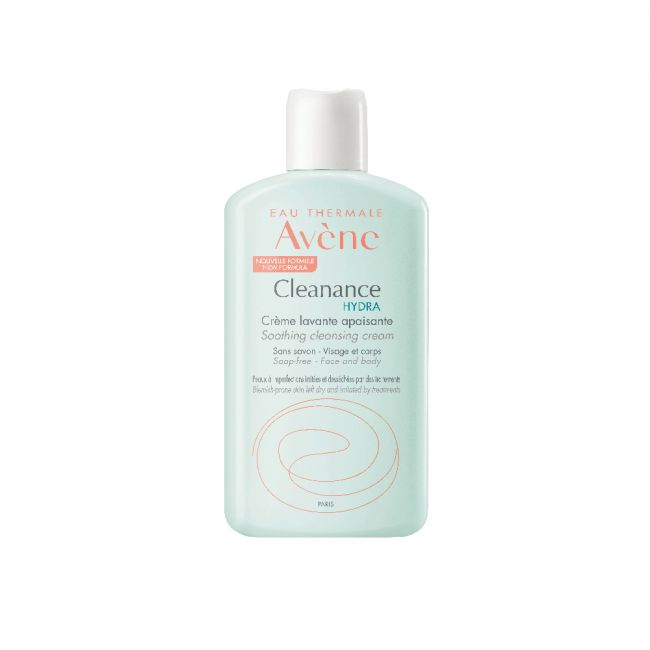 Avène Cleanance HYDRA Soothing Cleansing Cream on voidemainen puhdistusaine rasvaiselle, epäpuhtaalle sekä pintakuivalle iholle. Saippua-aineeton ja hellävarainen puhdistusvoide ehkäisee ihon kuivumista ja lievittää ihoärsytystä. Puhdistusvoidetta käytetään etenkin ihoa kuivattavan aknelääkityksen aikana. Se soveltuu rasvaiselle iholle aina kun iho on pintakuiva.