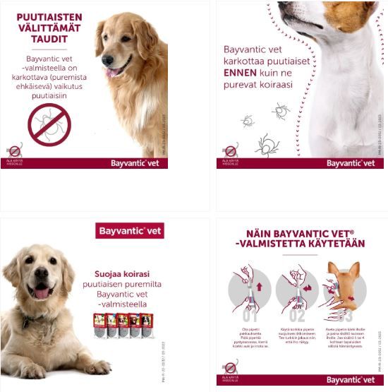 Bayvantic vet paikallisvaleluliuos on koirien ulkoloislääke, joka tehoaa ja antaa suojaa puutiaisia, hyttysiä, hietasääskiä, pistokärpäsiä ja kirppuja vastaan. Ulkoloisia tappava ja karkottava vaikutus kestää jopa neljä viikkoa. Bayvanticin teho perustuu kahteen vaikuttavaan aineeseen, imidaklopridiin ja permetriiniin. Valmiste säilyttää tehonsa myös koiran kastuessa, esimerkiksi pesun aikana tai koiran uidessa.