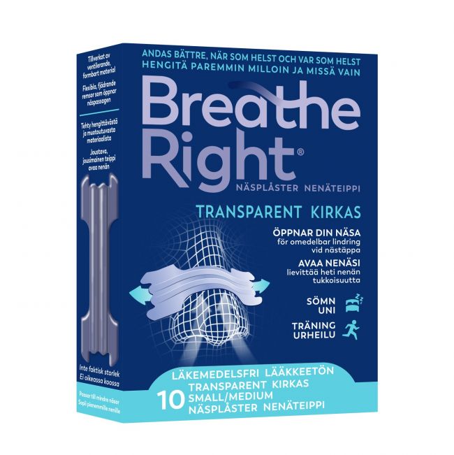 Breathe Right nenäteippi kirkas Small, 10 kpl