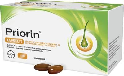 Priorin® sisältää mm. biotiinia, joka edistää hiusten pysymistä normaaleina. Priorin on vitamiini-, kasvisuute- sekä aminohappovalmiste.- Ravintolisä
