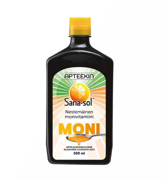 Monivitamiinivalmisteesta saat mm. D-vitamiinia, E-vitamiinia, C-vitamiinia sekä B-vitamiineista B1-, B2-, B3-, B5- ja B6-vitamiineja sekä foolihappoa. Täydennä vitamiinien saantisi nauttimalla lusikallinen Sana-sol monivitamiinivalmistetta joka päivä!